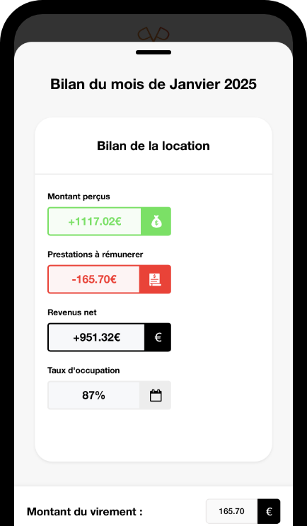 Pour éviter d’avoir les propriétaires en co-hôte et de les déranger avec les notifications d’Airbnb / Booking, nous avons développé une interface simple, avec « Calendriers », « Bilan mensuel » et « Dossier en ligne » pour qu’ils se rassurent sur la rentabilité.